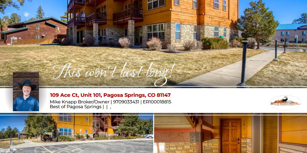 Beautifully maintained 2BD/2BA luxury condo overlooking the golf course in one of Pagosa Springs’ most desirable newer buildings. This light and bright ground-floor end unit offers single-level living with no stairs and a spacious patio to enjoy lush landscaping and fairway views.